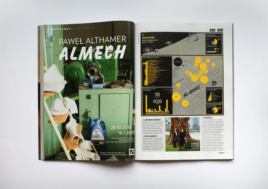 ‘Al Quoz’ is the dusty industrial heart of Dubai, where 16 art galleries settled in the last 10 years. In the midst of 166 cement factories some of the most interesting Middle Eastern talents were discovered and introduced to the international art scene. Low rents and generous spaces, a unique feel and art from all over the world – ‘Al Quoz’ is far from fitting the cliché of shiny dull Dubai.